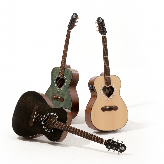 ZEMAITISでは、2022年7月現在でハート型サウンドホールのアコースティックギターが9種類ほど発売されています。